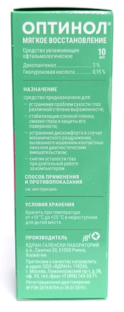 Капли увлажняющие Оптинол Мягкое восстановление 10 мл